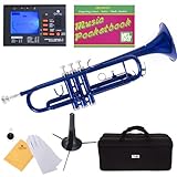 Mendini MTT-BL Blue Lacquer B Flat Trumpet w/ Case, Accessories & Chromatic Tuner with Metronome