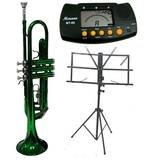 Merano B Flat Green Trumpet with Case+Metro Tuner+Music Stand