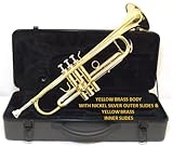 This is a beautiful trumpet with yellow brass and nickel plated finish. It has a smooth action steel pistons. Ideal for intermediate players and student beginners as well. Teacher approved trumpets. *Brand may vary Read more